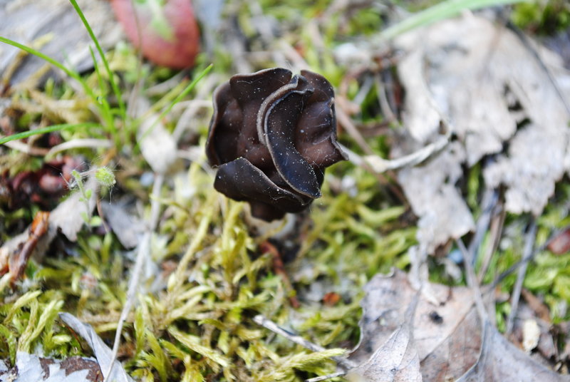 lebenyből nő össze. Széle hullámos. Sötétbarna, szürkés- vagy feketésbarna színű. A lapok felülete sima, hamvas.